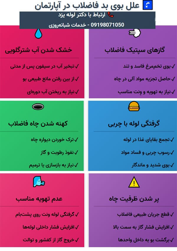وقتی چاه پر می شود، جریان طبیعی فاضلاب قطع و فشار گاز به سمت بالا زیاد می شود. همین امر باعث برگشت بو به داخل واحدها می شود؛ حتی اگر سیستم لوله کشی سالم باشد.